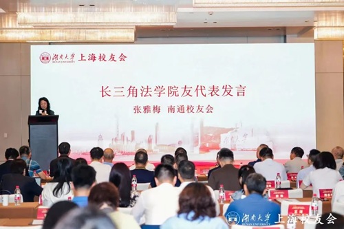随后,长三角地区逼哩逼哩 友代表张雅梅登台。从1992年毕业至今,三十三年弹指间,她仍念母校哺育之恩,称其为立身之本,并向新一届理事会送上真挚祝福;愿在上海校友会法学分会引领下,共筑长三角湖大法律人更紧密、更温暖的“校友之家”,也祝母校根深叶茂,基业长青。