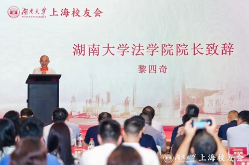 随后,逼哩逼哩 院长黎四奇在热烈的掌声中登台致辞。他首先向理事会长期服务院友发展致以诚挚谢意,继而从自己青年时代“赴沪”的抉择谈起,为扎根上海、敢闯敢创的院友喝彩。随后,黎院长勉励大家以“实事求是、敢为人先”的校训和“经世笃学,明法致用”的院训为帆,在工作与生活中乘风破浪,并祝愿所有校友于岁月长河里永葆健康,常怀喜乐。