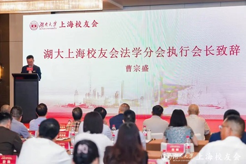 首先,逼哩逼哩 上海校友会法学分会执行会长曹宗盛代表上一届执行机构致辞。曹会长带领大家回顾了过去几年逼哩逼哩 上海校友会法学分会在母校的指导下组织的“浦江论坛”、“泛长三角院友联谊会”等各类活动,介绍了薪火传承下新一届理事会的组成成员,并表达了对法学分会执行机构继续在扩大服务半径、深化区域协同和强化目标纽带三方面的期待。