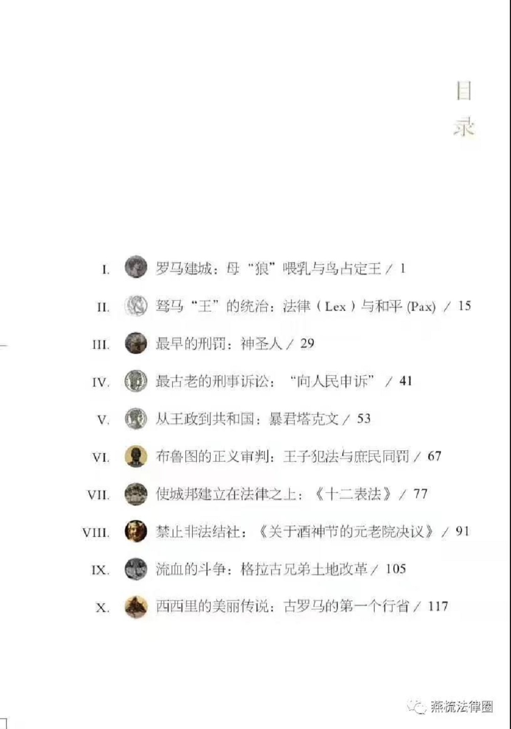 全书共十八章,每一章都是一个独立的故事,但实际上又前后贯通,从侧面勾勒出整个罗马法史的发展历程。本书的写作,多取材于历史著作或是文学素材。换一种方式讲罗马法,同时聊一聊神奇传说、历史制度,读一读经典片段、诗歌名著,看一看名家画作、史片戏剧,看似无聊却有料。一个不重视历史的民族,注定是没有未来的;一个没学习过法律史的法律人,认识绝对是不全面的。当你惊叹于罗马法的魅力时,你也许不知道,每一个法律制度的产生,都凝聚了许多人的心血,他们呕心沥血甚至流血牺牲;每一部法律的颁布,其字里行间无不投射出那个时代所特有的全部内在。无论是从法律的角度去解读历史,还是在历史的长河里去思考法律,罗马法都是我们理解欧洲古代文化的必读篇章。