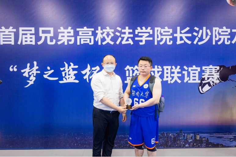校友篮球队获得本届篮球联谊赛优胜奖,李晓龙律师代表领奖。