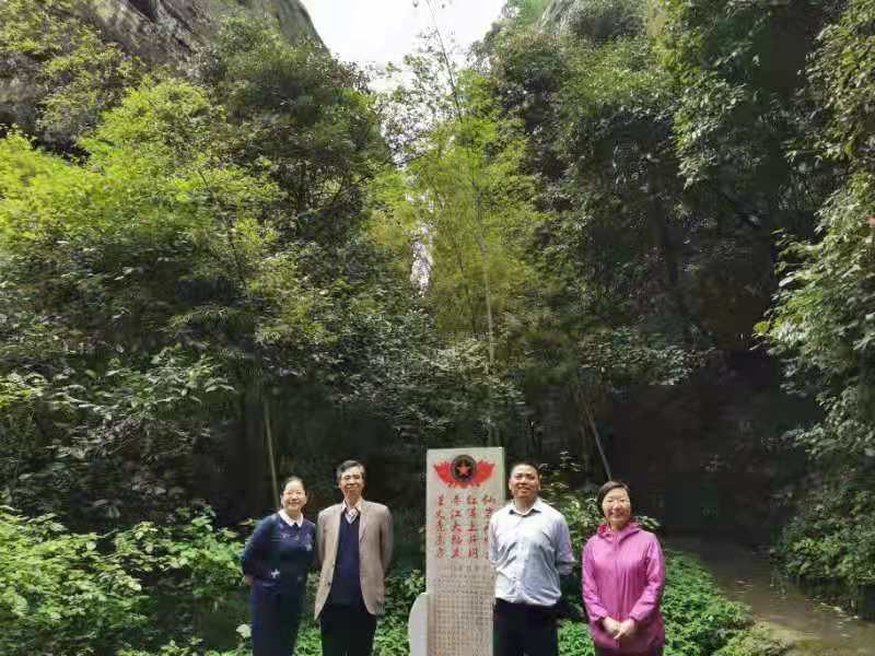 4月18日上午,支部成员一行来到了长寿镇仙姑岩藏军洞、红军营等地参观。仙姑岩红军营旧址全国闻名,海拔280多米,属丹霞地貌,沟壑纵横,岩洞遍布,悬崖峭壁,山势险峻。1928年彭德怀元帅发动了平江起义,创建了中国工农红军第五军,随后率部奔赴井冈山。在途经长寿、龙门时,与敌人浴血奋战,突出重围。一部分伤员便转移到仙姑岩。革命先辈方正平(1955年授予中将军衔)等曾以此地为据点,开展了长达三年之久的游击战争。该地至今保留了红军哨卡、红军指挥所、红军大舞台、军需库、红军井、藏军洞等遗迹。