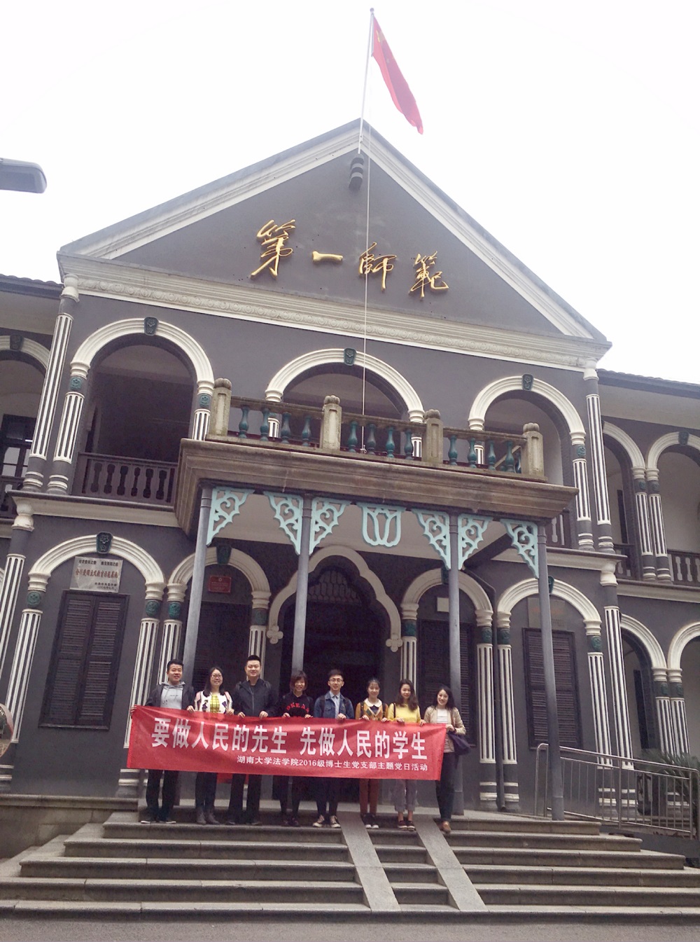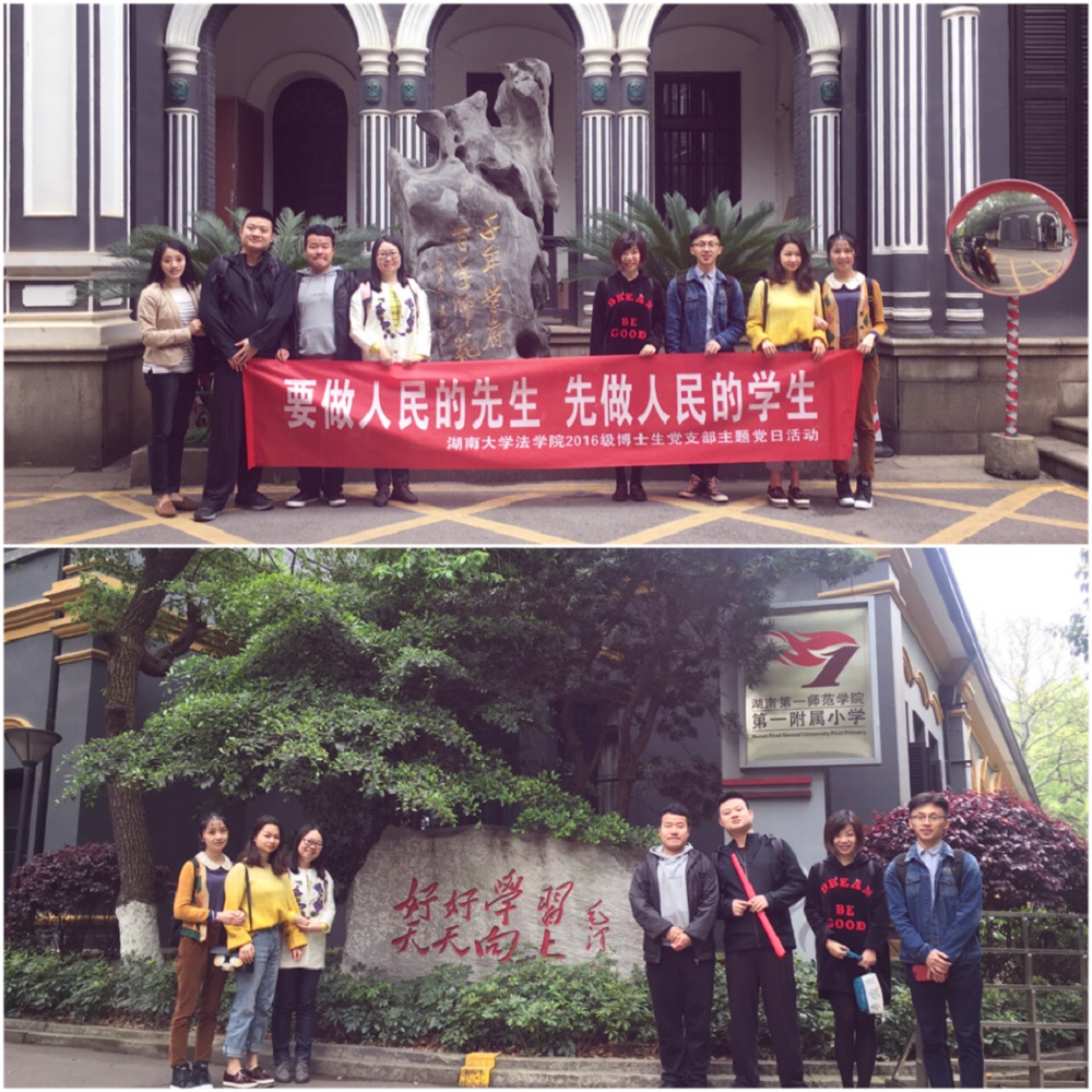 2016级博士研究生党支部全体党员在湖南第一师范学院城南校区、长郡中学、李富春故居等地开展“要做人民的先生,先做人民的学生”系列主题党日活动。