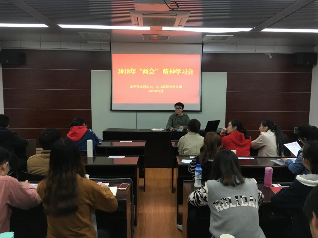 会上,支部组织委员黄青带领同学们学习了李克强总理所作的政府工作报告和答记者问的有关内容。支部宣传委员王浩带领同学们观看了习近平总书记在十三届人大一次会议闭幕会上的重要讲话并组织研讨交流。支部成员李宇哲、谢迪宇、何嘉珣、杨翱飞、李思月等通过自行制作的PPT畅谈了对“两会”精神和习近平总书记重要讲话精神的学习体会。