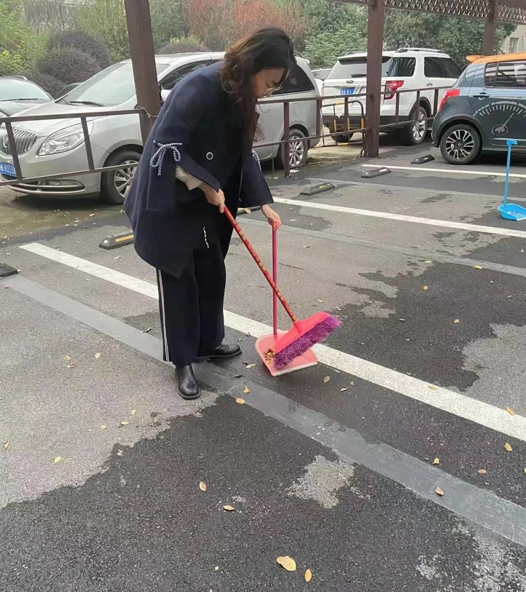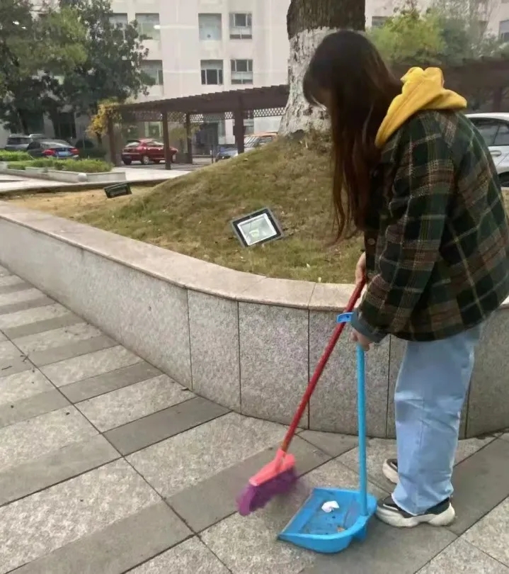 同志们分工协作,有的手持扫帚清扫落叶,有的徒手仔细捡拾起散落在各处的废弃物,还有的认真清除园地上的落花杂草,充分发扬不怕脏、不怕累的服务精神。