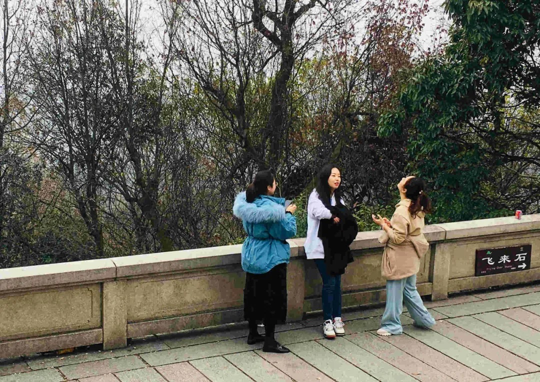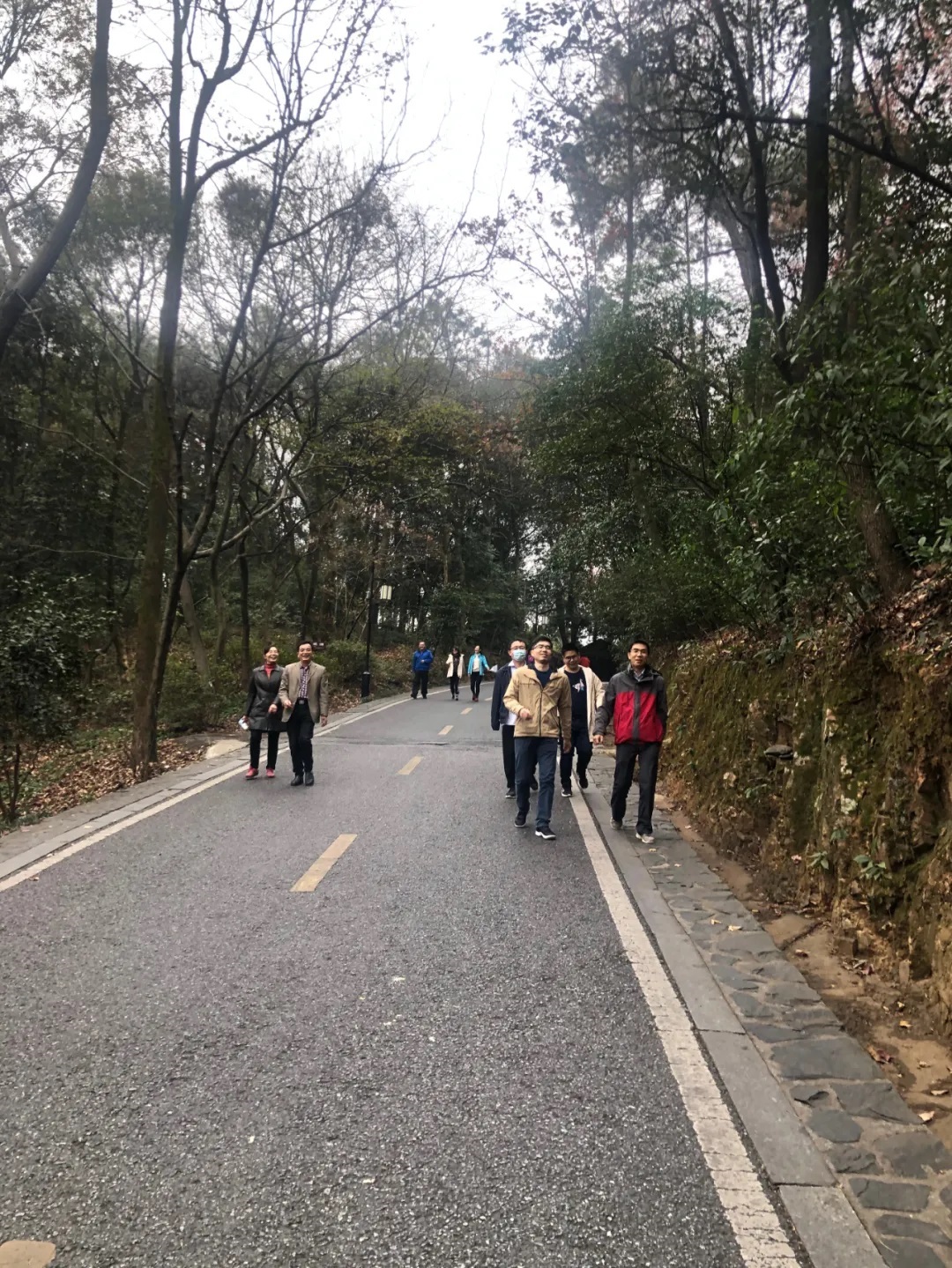 职工在学院门口合影留念后,一同往岳麓山脚走去。登山伊始,大家精神抖擞、意气风发,向着山顶奋力前进。爬山途中,老师们结伴而行,或相互搀扶,或相伴聊天,欣赏岳麓山美丽的风景,处处展现着逼哩逼哩