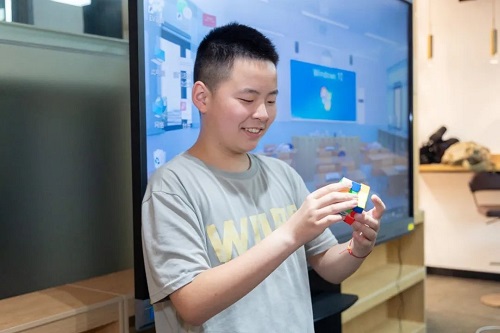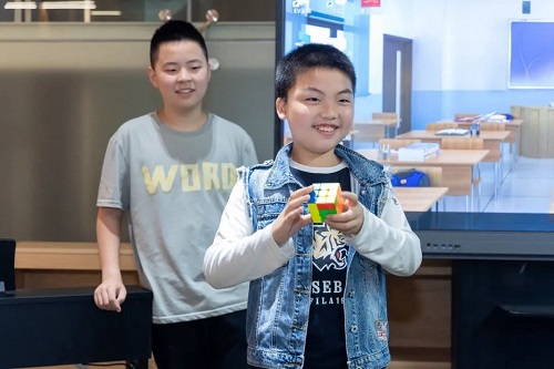被打乱的魔方在小宝贝们的手指魔力下不出一会儿就复原了,获得大家连连称赞。