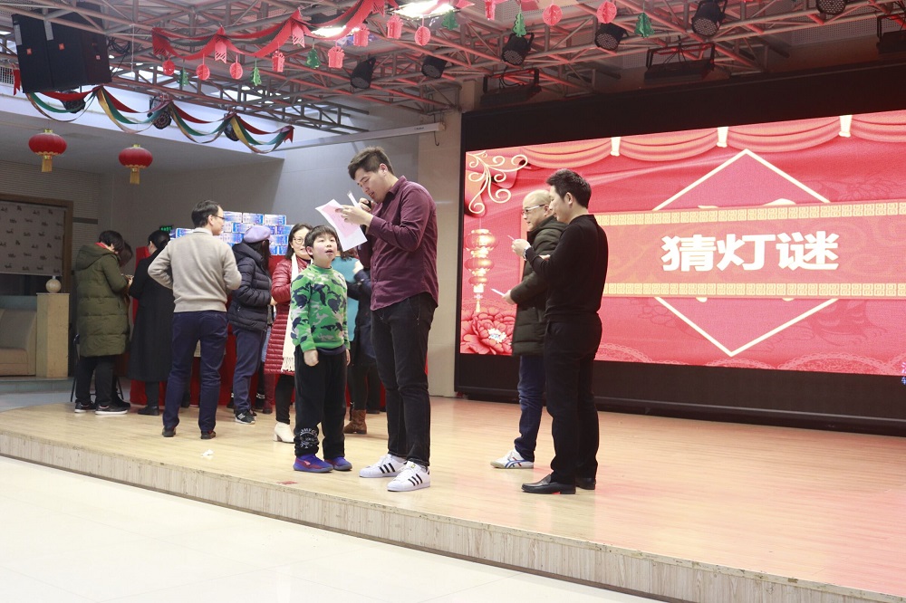 在到场观众的掌声中,主持人王浩宣布联欢会游戏环节正式开始。晚会共设置了三个游戏环节,均得到老师们积极踊跃的参与。抢凳子游戏中,老师们或听音乐以矫健身法取胜、或观距离以绝对实力抢夺位置“制敌”,特别在亲子组同台竞技里,小朋友以“初生牛犊不怕虎”的气势成功将家长组淘汰,一展“雄姿”;物品搜集游戏环节中,全场观众齐齐动身,在场内搜寻主持人提出的钢带手表、茶叶、橘子、蓝色外套等种种“珍奇物品”;猜灯谜环节中,教师们更是开动脑筋,猜字、猜词、猜成语,动物、地名、日用品,五花八门,应有尽有,将拆字、会意等种种方法用到极致……三个游戏环节最终送出了70余份奖品,游戏过程中,还穿插了老师与小朋友的精彩表演,雷玉琼老师为大家带来了优美的歌曲演唱《都是夜归人》、小朋友为大家带来了街舞表演《good boy》赢得了观众的热烈掌声。