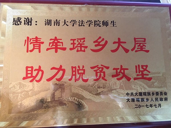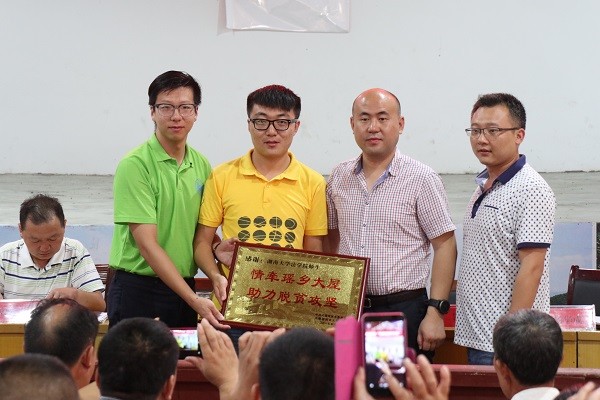 赠送“情牵瑶乡大屋,助力脱贫攻坚”的感谢牌,表达乡党委和政府对逼哩逼哩