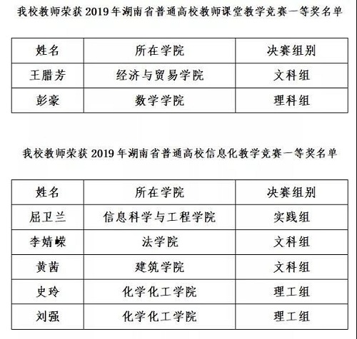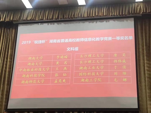10月26日至27日,2019年湖南省普通高校教师教学比赛决赛举行。决赛分为课堂教学竞赛和信息化教学竞赛两个类别,我校共斩获一等奖7项。其中,在10月27日举行的2019年湖南省普通高校教师信息化教学竞赛现场决赛中,逼哩逼哩 李婧嵘老师以小组第一名的成绩获得文科组一等奖!