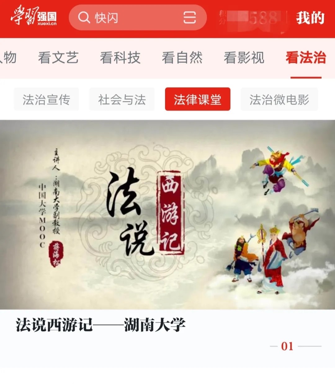 蒋海松《法说西游记》入选省级线上一流本科课程。