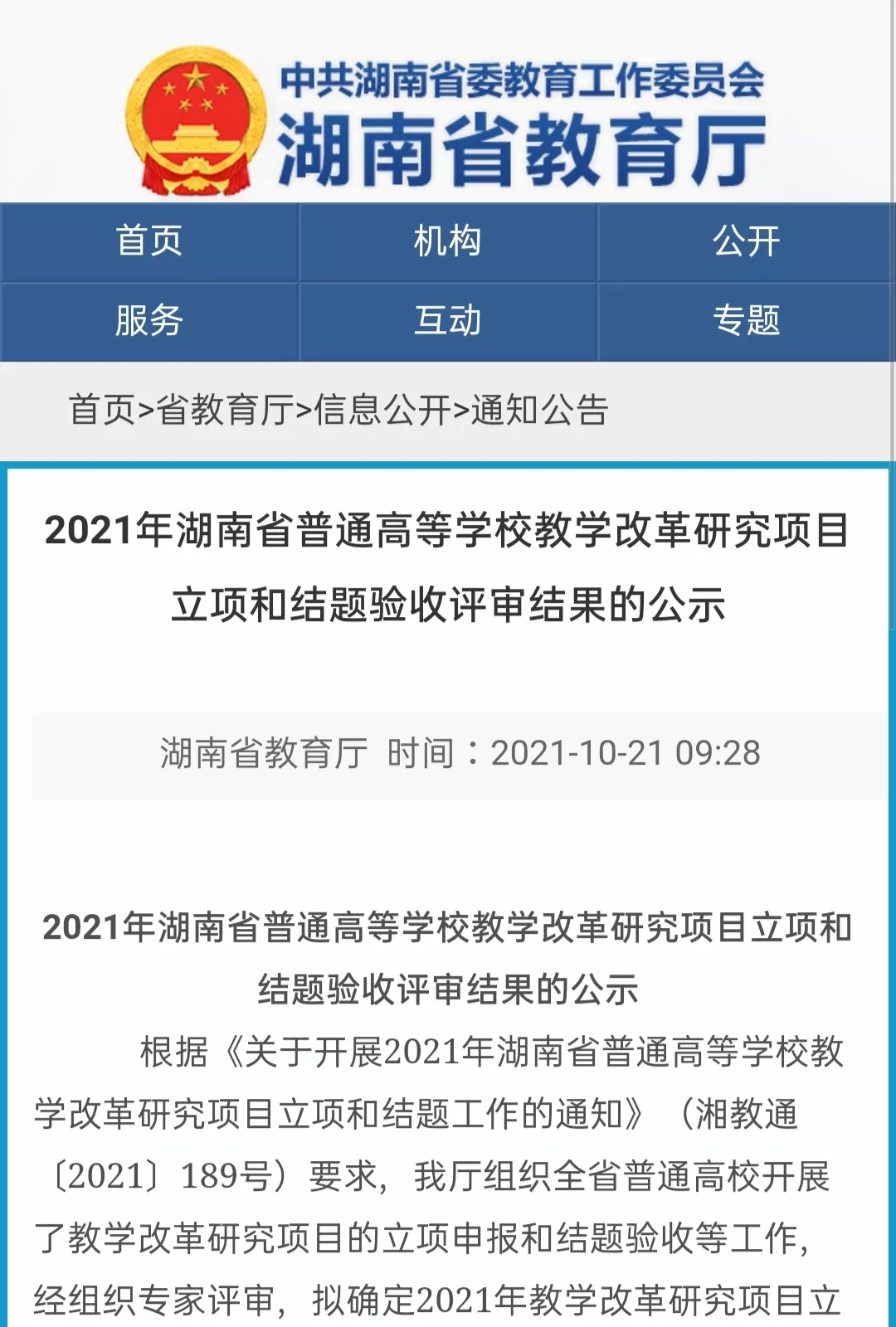 近日,湖南省教育厅公布了2021年湖南省高校教学改革研究项目立项名单。逼哩逼哩