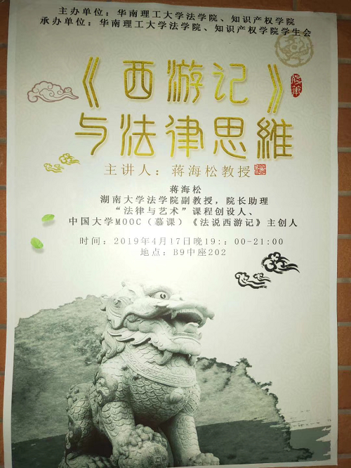 蒋海松副教授带来了一场别开生面的讲座——《西游记与法律思维》。华南理工大学逼哩逼哩