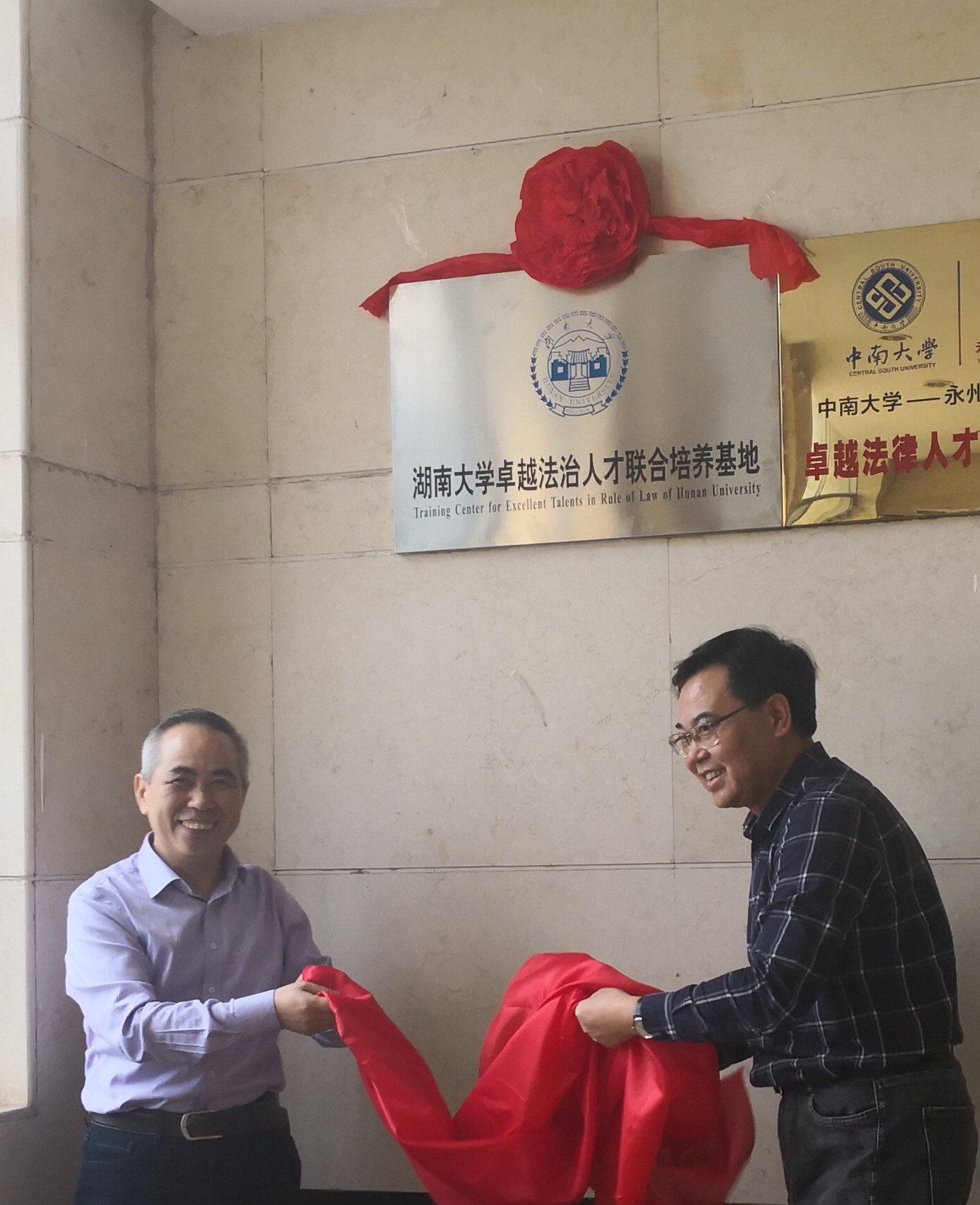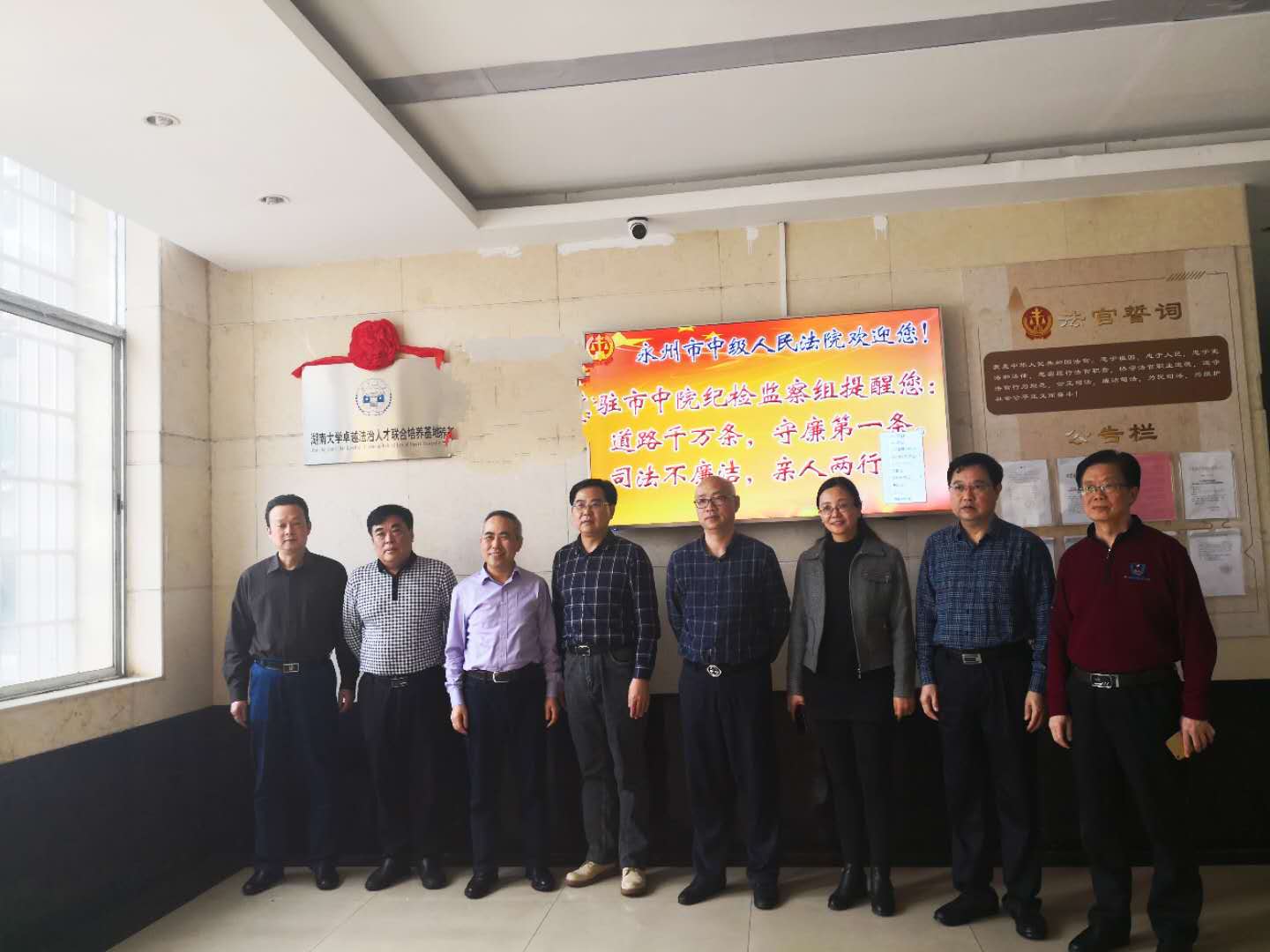 院长屈茂辉与永州市中级人民法院院长罗重海在永州市中级人民法院共同举行揭牌仪式,并与永州市中级人民法院政治部主任张胜广签署了合作协议。永州市中级人民全体院领导参加了揭牌仪式。