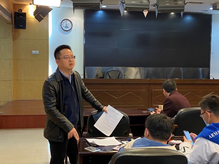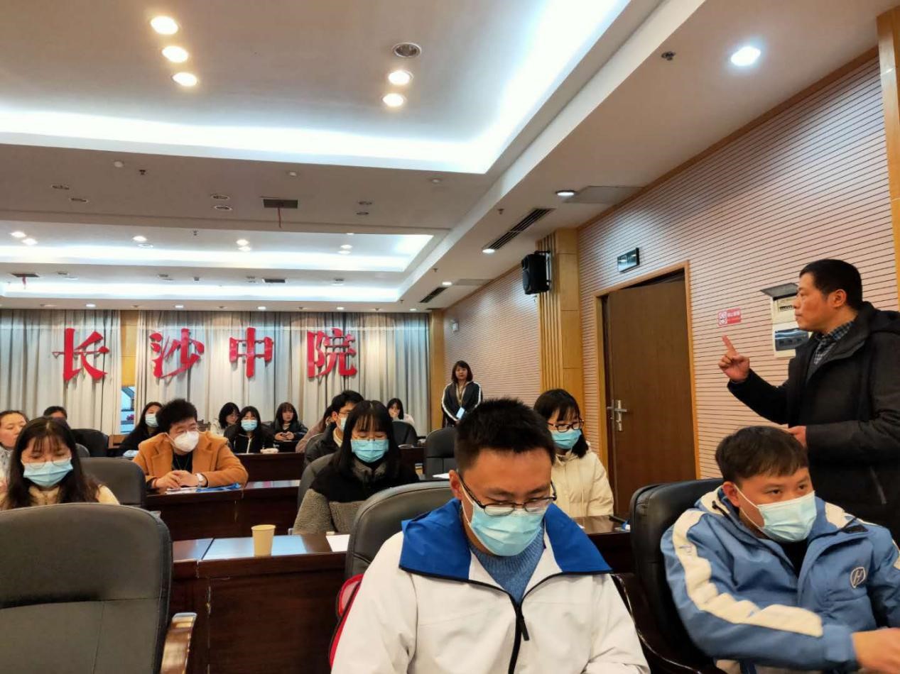 蒋海松副院长做实习动员。他首先感谢长沙市中院和各家对口法院在疫情防控的背景下,仍然敢于担当,为湖大毕业生提供实习岗位,这是极其难得的机会。蒋老师嘱托同学们珍惜机遇,把握机会,认真学习、熟悉法院的审判流程,把理论与实务结合起来。同时,务必遵守法院纪律,从踏入法院大门的那一刻起,就要转换身份,时刻以法院人的身份严格要求自己。蒋老师也建议大家不要只停留在应付日常工作的层面,要有深度,主动思考,主动学习,带着问题意识实习,在实习中发现和解决问题。他以电影《见习律师》、青年李克强及诸多知名法律人士的实习故事为例,寄语实习同学们在实习岗位上大展光彩,做出成绩。