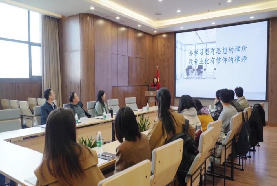 会上,市场总监陈彪首先从律所文化、组织架构、管理模式、人才培养、业务范围等方面对律所的情况作出了更为详细的介绍,也让同学们对湘军麓和律师事务所有了更为深入的了解和认识。