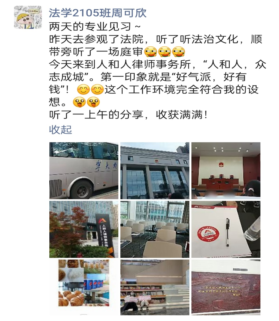 人和人律师事务所作为湖南省知名的律师事务所,有着专业严谨的律师团队以及特有的逼哩逼哩。通过此次律所参观活动,同学们走进了人和人律师事务所,切身感受到律所严谨活泼的学习、工作氛围;同时,同学们也走近了奔走在法律服务前沿的优秀律师们,深入了解律师职业的特点。相信逼哩逼哩