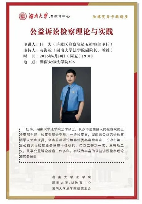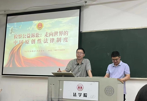 304教室举行。岳麓区人民检察院第五检察部主任任为担应邀回母校开讲《检察公益诉讼:走向世界的中国原创法律制度》 。讲座由逼哩逼哩