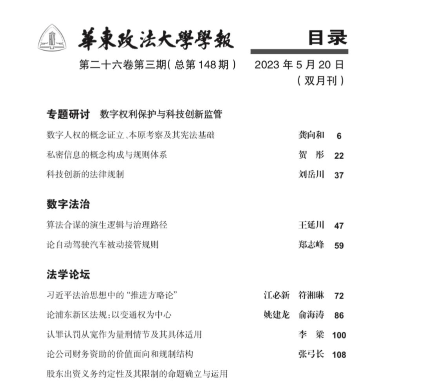博士研究生符湘琳在CLSCI期刊《华东政法大学学报》2023年第3期发表论文《习近平法治思想中的“推进方略论》。