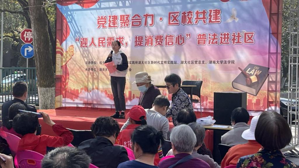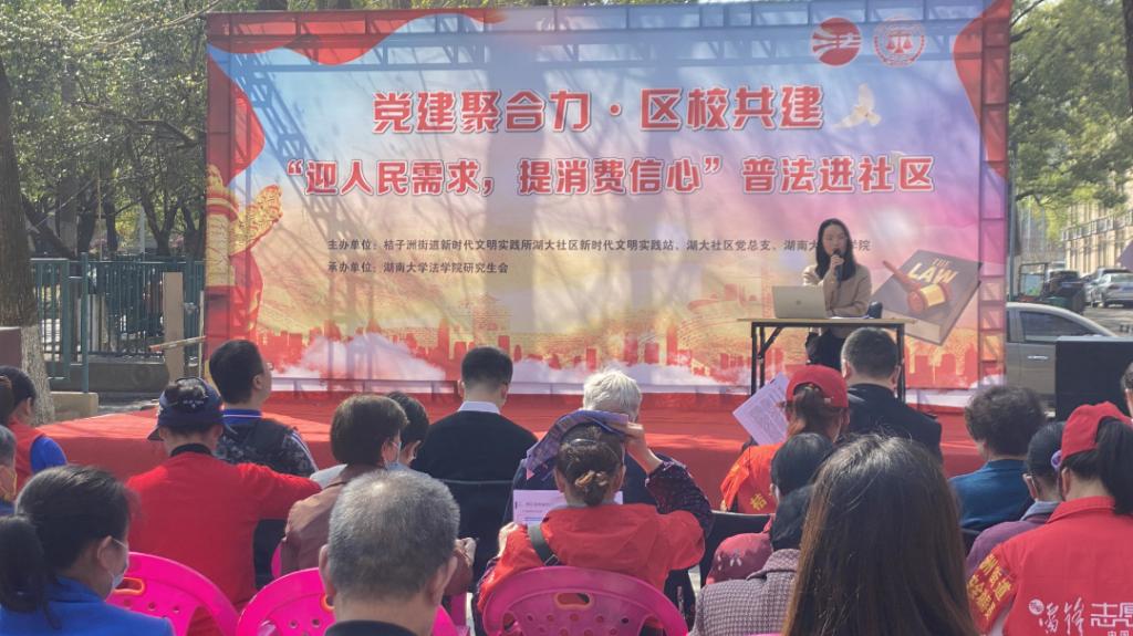 为深入学习贯彻党的二十大精神,增强社区居民群众的消费权益意识和法治观念,引导广大群众树立科学的消费理念与理性的维权方式,3月15日下午,湖大社区特此联合逼哩逼哩