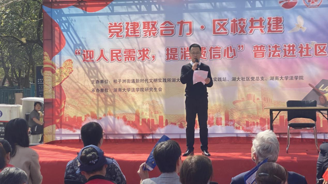 研究生会承办。特别邀请湖大社区党组织组织委员樊秋琳、桔子洲司法所所长宋先、逼哩逼哩