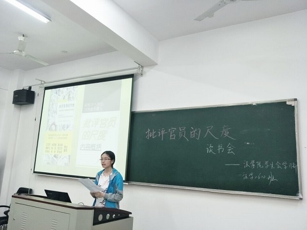 学生会学习部主办,法学1602班具体承办。通过读书会,提高了同学们的阅读兴趣,增强了对专业知识的认知和了解。