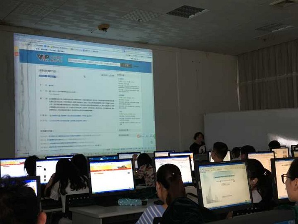 图书馆刘美桃老师向同学们主讲图书馆利用基础知识,包括书刊查找和利用方法、图书馆常用电子数据库的检索等,逼哩逼哩