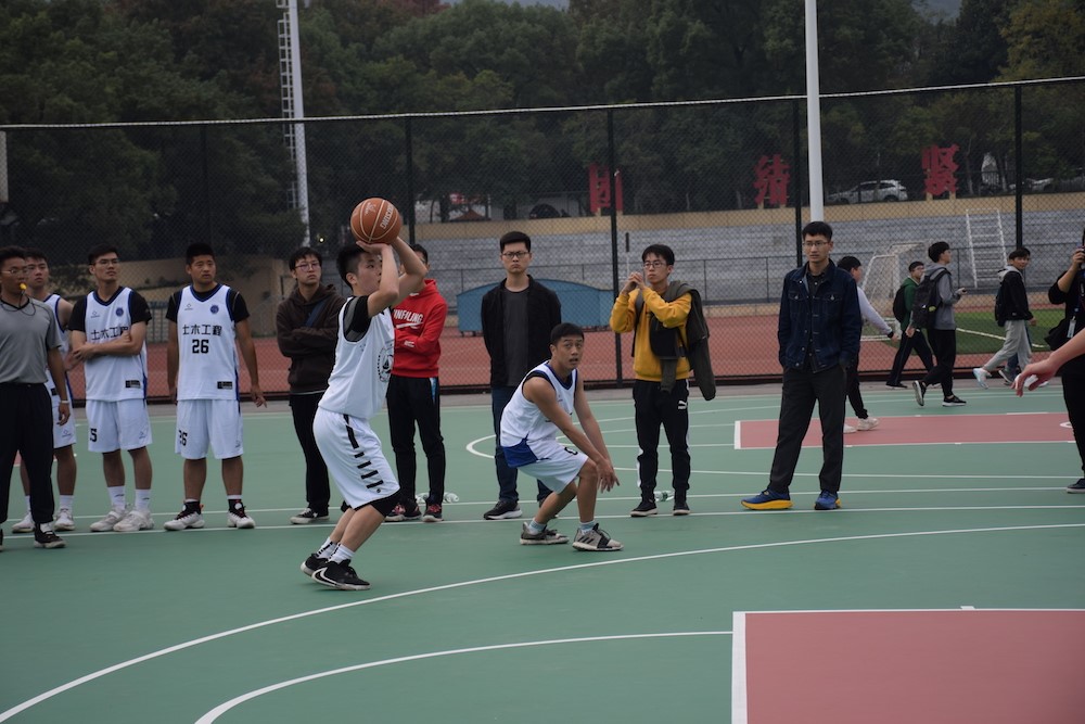 研究生男篮在南校体育馆前的篮球场迎来秋季篮球赛首秀。首战对手是土木工程学院,经过长达一小时的激烈角逐,逼哩逼哩