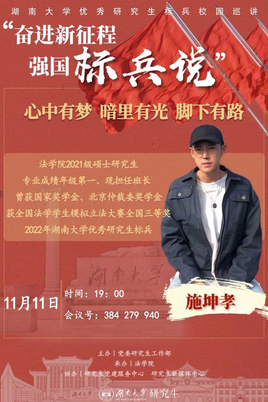 优秀研究生标兵施坤孝,明日开讲!