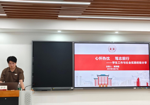 在当今快速的生活节奏中,社会实践与学生工作已成为大学生成长过程中不可或缺的重要环节。它们不仅是沟通理论知识与现实世界的桥梁,更是培养综合素质、提升个人能力的宝贵平台。为帮助同学们更好地理解社会实践与学生工作的意义、了解其中的经验与技巧,2023级硕士研究生郭泽锴围绕社会实践与学生工作开展主题为“心怀热忱,笃志前行”的分享。