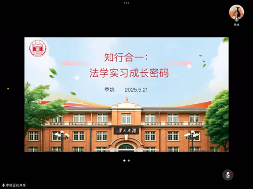 2023级硕士研究生季姚,围绕“知行合一:法学实习成长密码”主题,为同学们带来了一场兼具理论深度与实践智慧的精彩分享。季姚以自身经历为切入点,系统梳理了法学实习的“三步走”策略。谈及实习中的成长密码,季姚提出“场景化学习”理念。她以在最高人民法院实习期间参与重大案件归档、撰写司法建议的经历为例,指出“即使是基础工作,也要主动构建知识框架”。