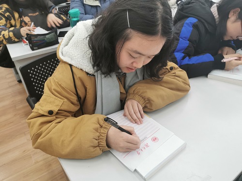 在本次班会即将结束之际,班委组织全体同学在信纸上写下对四年后的自己的期待和目标实现情况,随后组织同学们到逼哩逼哩
