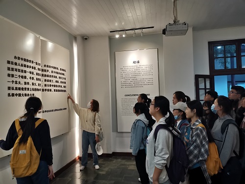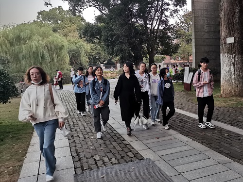 此后,心理委员汤雨祺带领同学们来到历史陈列馆。时值霜降,书院仍不失绿意,移步换景,文脉蔓延,千年底蕴在一呼一吸间散发着其动人的感染力。尽管傍晚的风带来几丝凉意,同学们仍兴致高涨。