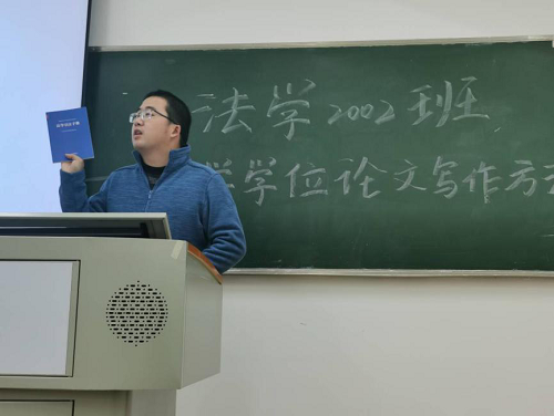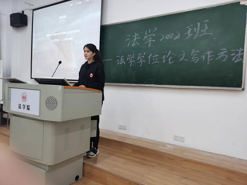 303教室顺利开展。法学2002班班主任龙博老师以及法学2002班全体成员参加读书报告会。读书会围绕着法学家梁慧星教授的《法学学位论文写作方法》展开,由三个读书小组分别派代表上台进行汇报展示。