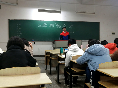 推优工作开始前,团支书李丹阳宣读入党推优的条件与推优流程。随后,刘芮伶、唐由龙、潘梓菁、王美云、李金芳、杨丽娜和张曦文等七位入党积极分子候选人依次上台做竞选发言。