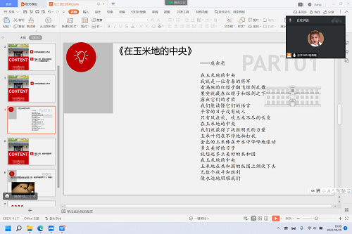 会上,同学们通过欣赏经典作品《在玉米地的中央》,思考并领悟其中的爱国主义精神。通过学习习近平总书记《论党的青年工作》一书,同学们纷纷表示要牢记总书记的谆谆教诲,不负青春、不负韶华、不负时代,树立正确的世界观、人生观、价值观,系好人生第一粒扣子,走好人生道路,为实现中华民族伟大复兴不懈奋斗。