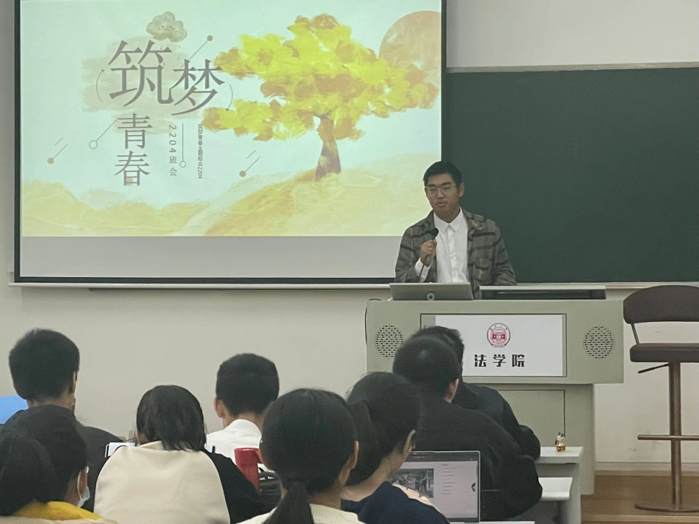 303教室开展了“筑梦青春,与法同行”主题班会。本次班会由宣传委员罗云星主持,班主任王聪老师、辅导员曹晓军老师以及2204班全体同学参与了本次班会。