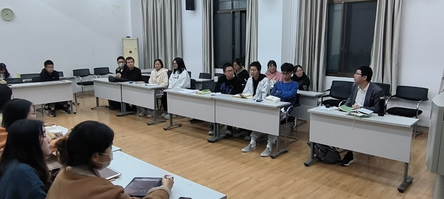 副教授蒋海松担任指导老师。法学2202班全体同学参与本次读书会。宣传委员钟文涵同学担任主持人。