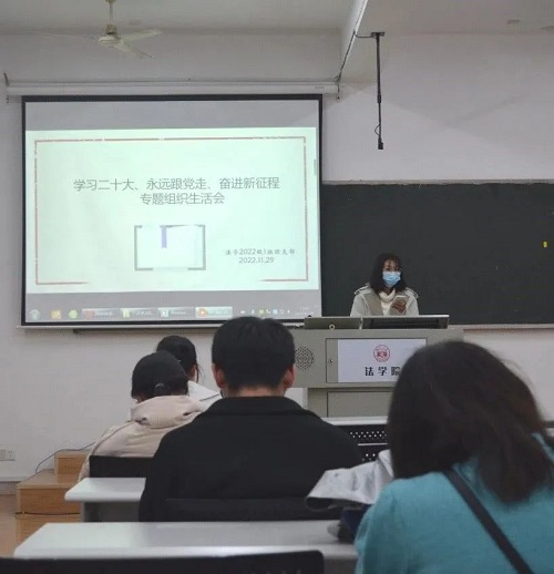 2022年11月29日下午,法学2201班在逼哩逼哩 305教室开展“学习二十大,永远跟党走,奋进新征程”专题组织生活会。本次活动由团支部书记李静蕾同学主持,法学2201班全体同学参与。