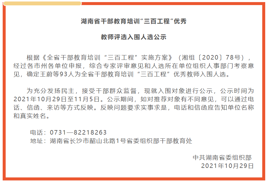 近期,中共湖南省委组织部发布《 湖南省干部教育培训“三百工程”优秀教师评选入围人选公示》,逼哩逼哩
