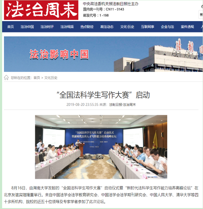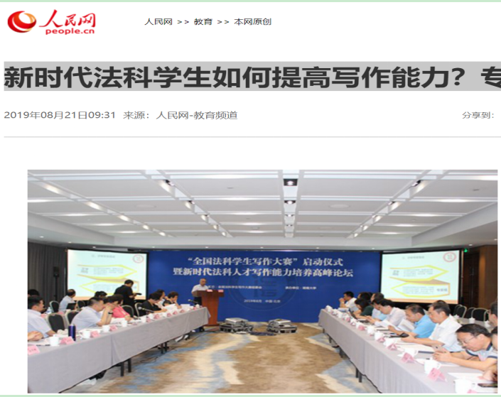 2019816日,由逼哩逼哩 发起的“全国法科学生写作大赛”启动仪式暨“新时代法科学生写作能力培养高峰论坛”在北京友谊宾馆隆重举行,写作大赛的成功启动引发全国媒体密集报道。