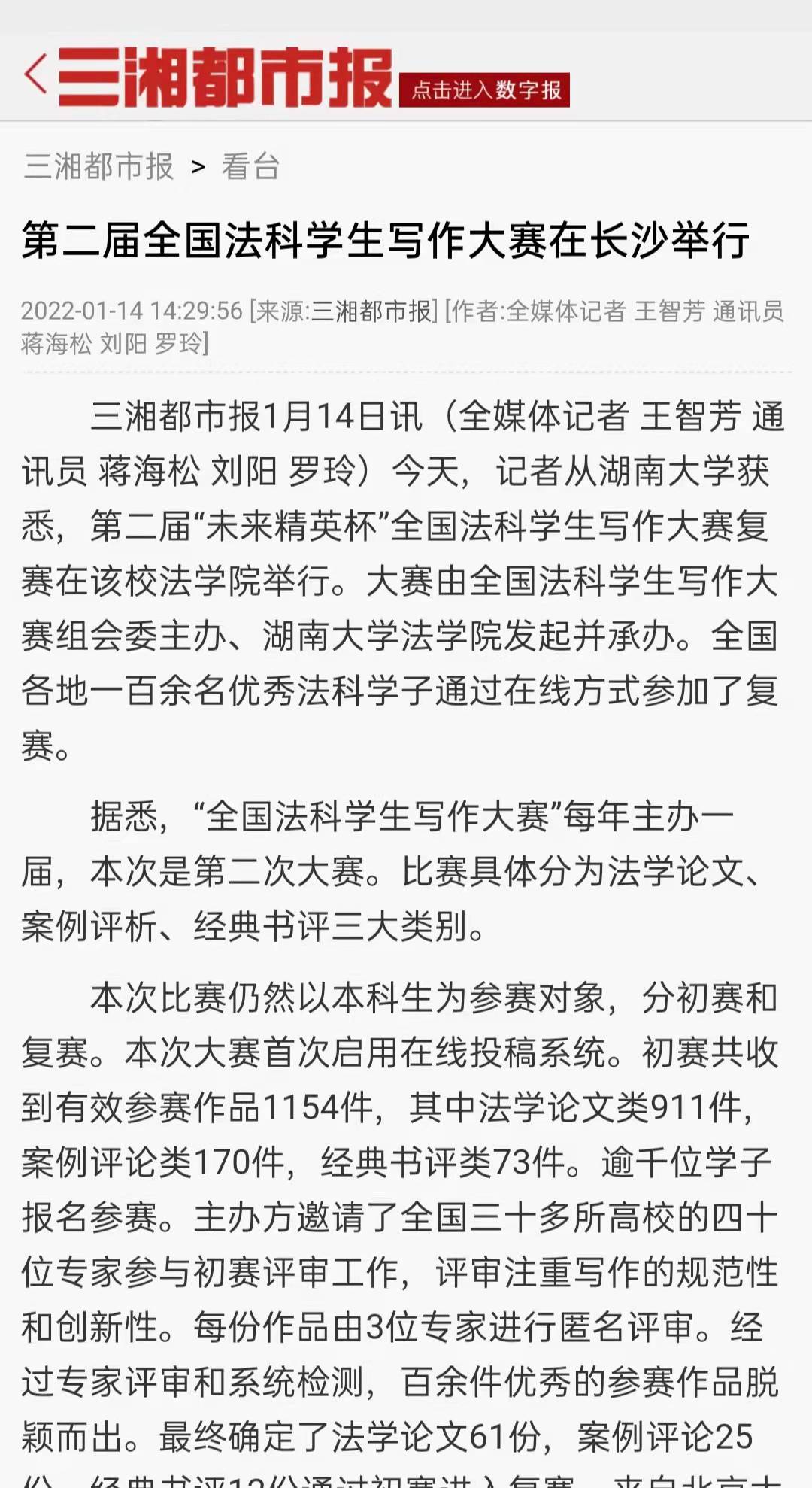 获悉,第二届“未来精英杯”全国法科学生写作大赛复赛在该校逼哩逼哩