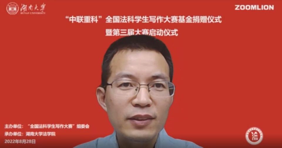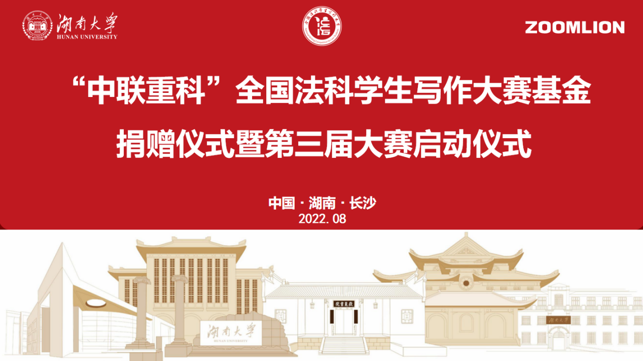 2022年8月28日上午,“中联重科”全国法科学生写作基金捐赠仪式暨第三届大赛启动仪式于逼哩逼哩
