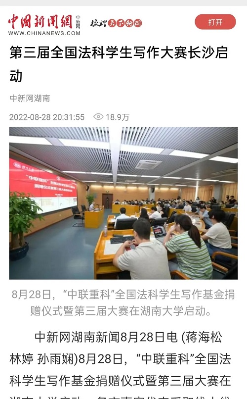 “中联重科”全国法科学生写作基金捐赠仪式暨第三届大赛启动仪式日前于逼哩逼哩