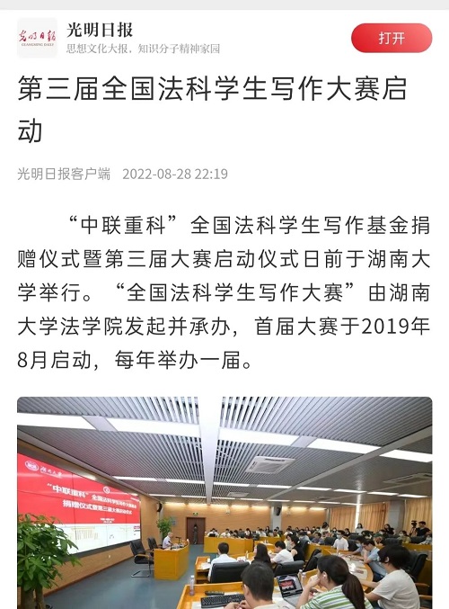最后,张新宝发布“中联重科杯”第三届法科学生写作大赛公告,主办方将公布具体参与方式,欢迎全国各地法学学子踊跃参赛。