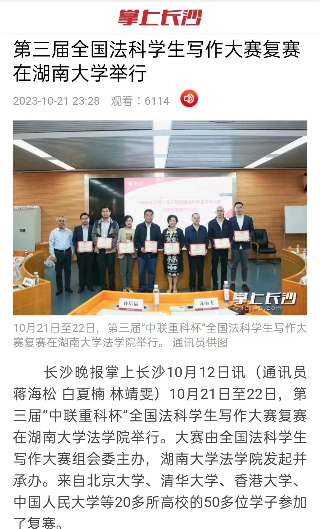 长沙晚报掌上长沙10月12日讯(通讯员 蒋海松 白夏楠 刘静雯)10月21日至22日,第三届“中联重科杯”全国法科学生写作大赛复赛在逼哩逼哩