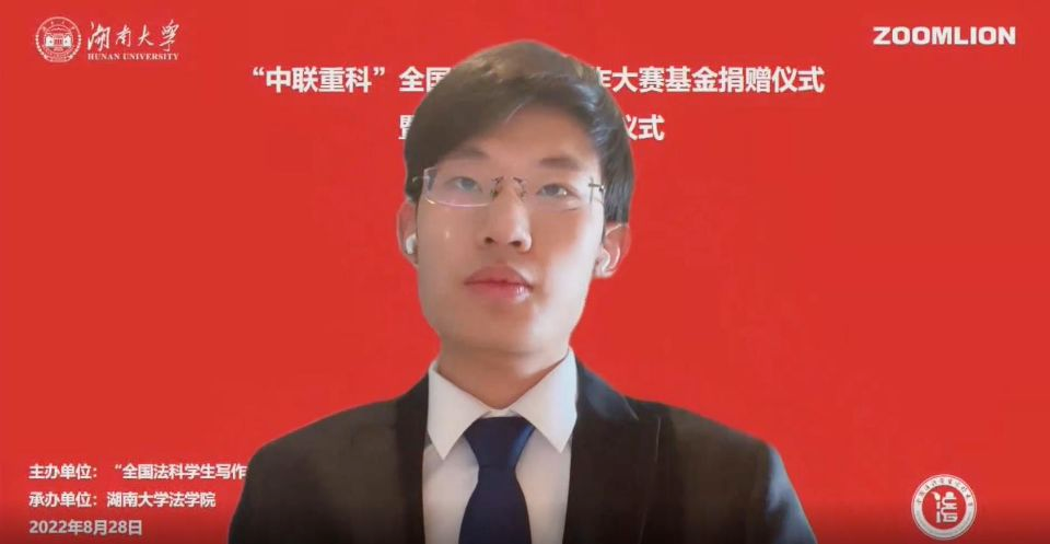 我是来自中国政法大学的葛嘉伟,非常荣幸能够代表第二届全国法科学生写作大赛的获奖选手来参与本次典礼。作为一个普通的法学本科生,能够参与这样的赛事本就是一次有意义的学术历练与成长。这里首先感谢大赛组委会及承办单位逼哩逼哩