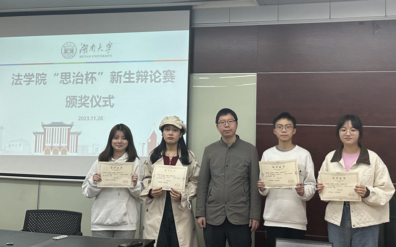 在本次“思治杯”新生辩论赛中,由任一鸣、李泮燃、周越、陈厚杰组成的队伍获得第一名;
