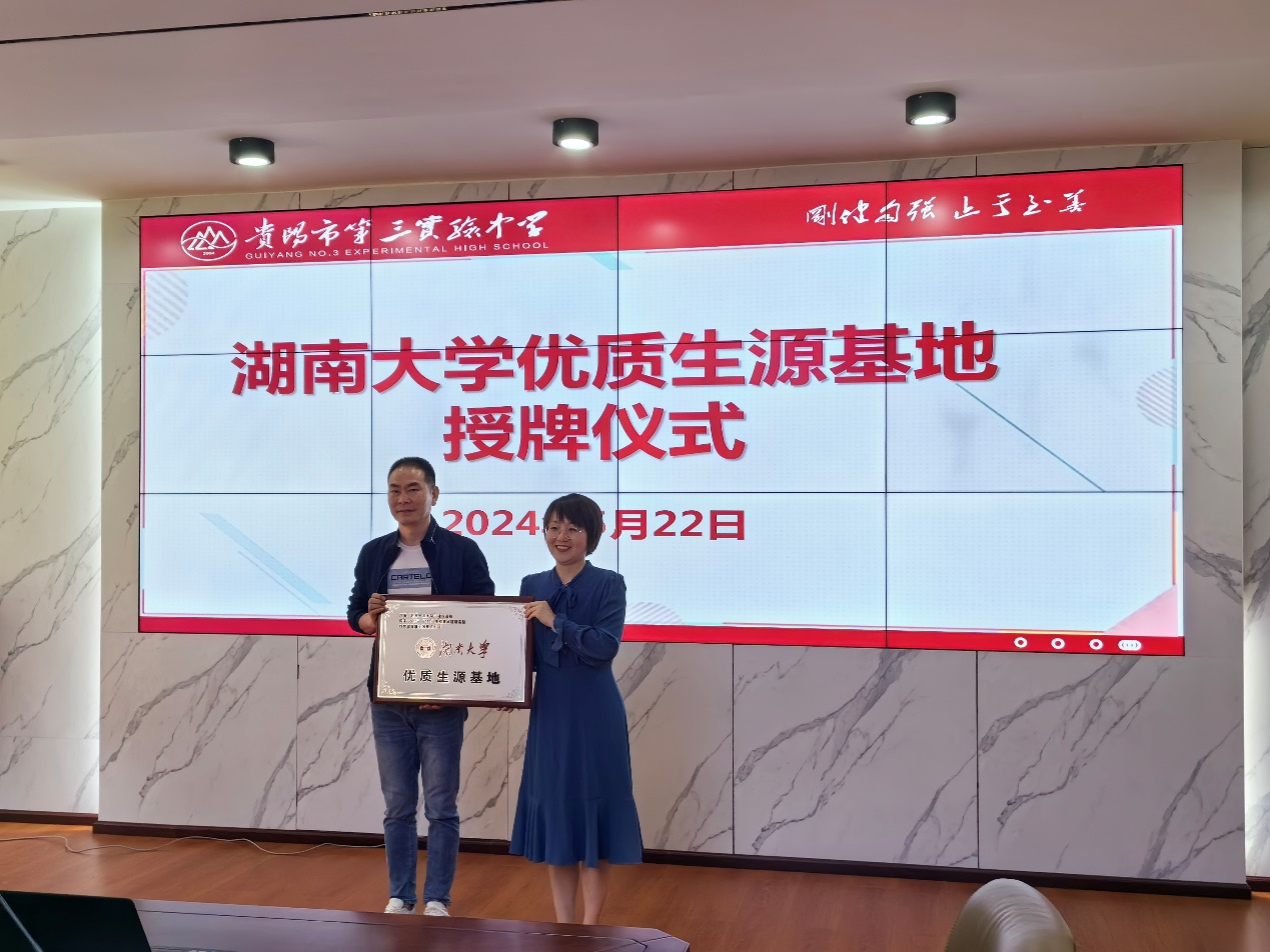 在交流过程中,双方希望开启多方位、多层次的对话和互动,让高校走进来,让高中走出去,实现资源共享,培养更多的优秀学子。交流结束后,招生组代表学校与贵阳市第三实验中学、长顺县民族高级中学负责人共同签署了“优质生源基地共建协议”,并授牌“逼哩逼哩