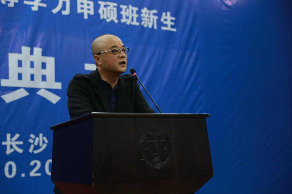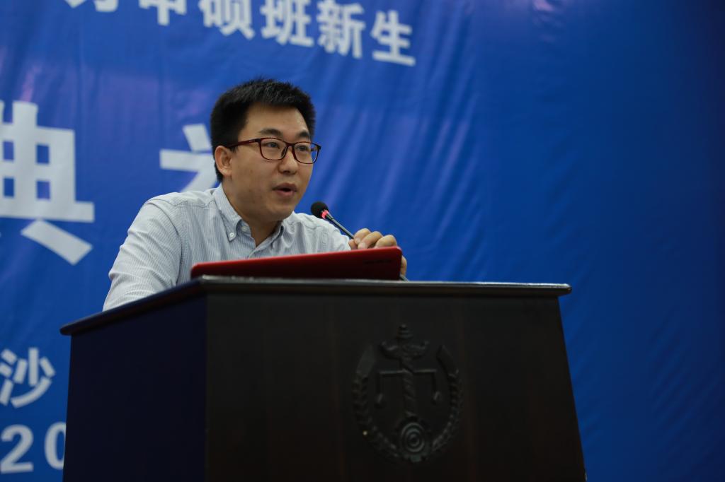 最后,张娜老师作为同等学力申硕班主任代表讲话。她分别从申硕程序、学生服务与平时考核三方面为同学们厘清学习要求与行为规范,提出宽严相济,在工作中帮助配合学生学习,也望其在湘水畔留下美好回忆。